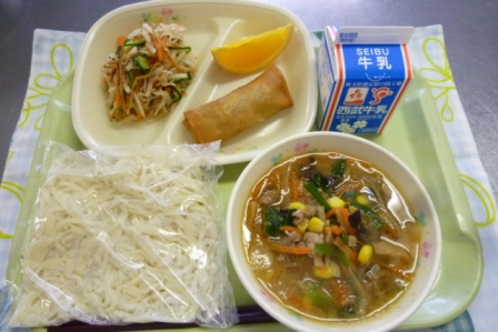 牛乳 ゴマ味噌ラーメン 春巻き かみかみあえ