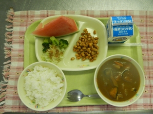 夏野菜のカレーは、7月と9月だけ作らます。夏野菜を油で揚げてから最後によく煮込んだカレーに加えています。年に2回しか食べることのできないカレーです。また、今日のカレーのじゃがいもの一部は、なかよし・ひまわり学級で収穫したものが使われました。感謝!!