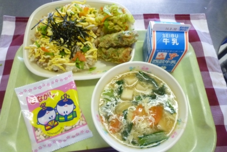 今日、3月3日は『ひな祭り』です。給食でも行事食として