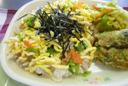 「ちらし寿司」と「ひなあられ」をだして、お祝いをしました。