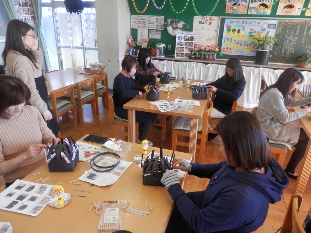 17日(火)午前10時から上柴東小のランチルームで、「クラフトバンドで作る小物入れ」が開催されました。PTA成人教育委員会が主催でした。クラフトバンドエコロジー協会認定講師の竹内小百合先生にお世話になりました。実習に夢中になり、時間が経つのを忘れてしまいました。ありがとうございました。