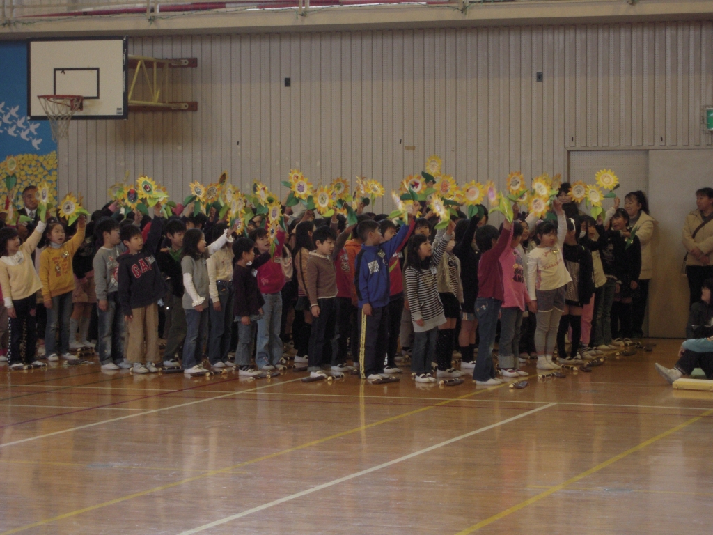 ひまわりのように輝いている6年生に、どの子も感謝の気持ちを込めて、ひまわりをふりながら歌いました。