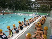 夏休みのプールです。楽しく、たくさん泳ぎましょう!