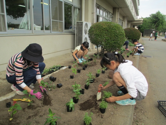 6日(水)の委員会の活動日にふかや学校花はなプランをしました。ボランティアの方8名にきていただきました。子供達のアイディアで花をアレンジして植えました。学校がきれいになりました。