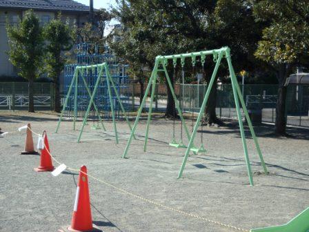 【 ブランコとすべり台 】 明るい緑色になって、まるで新品みたい?