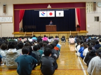 今年度最後の全校朝会が体育館で行われました。